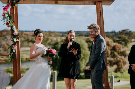 For couples who want the world to know they’re obsessed with each other whilst also keeping things light and playful, I’ll create all the right vibes! Your ceremony should be completely intentional and meaningful to you, and not the “boring part” everyone thinks they have to sit through before the bar opens. I’ll get your guests engaged in your love story and have everyone saying: “That was so THEM!” I write every ceremony from scratch, and I want all the dirt, in-jokes and smushy stuff. Let’s get vibin’ and make some magic that you’ll remember forever – sore cheeks, teary eyes, memories for life!
